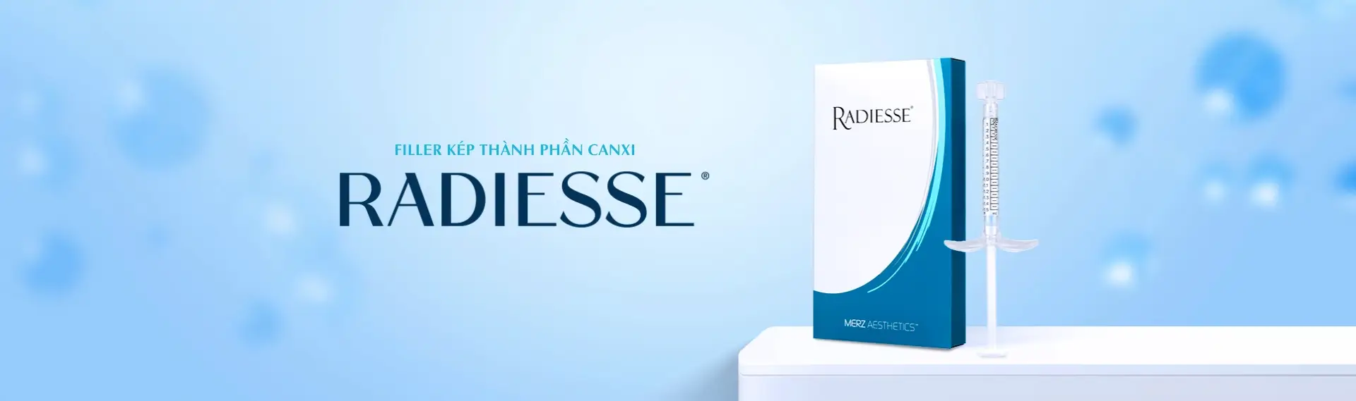 Thành phần chính của Radiesse là Canxi Hydroxylapatite (CaHA), giúp kích thích hoạt động của các nguyên bào sợi, từ đó thúc đẩy sản sinh Collagen mới.