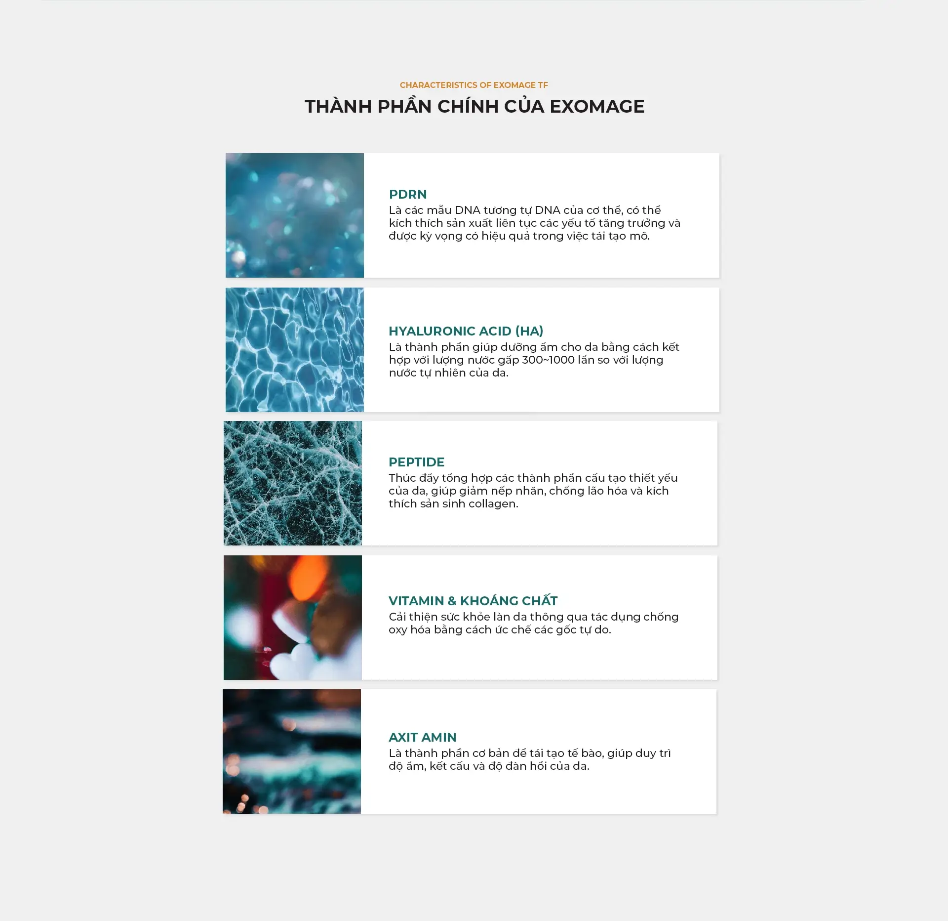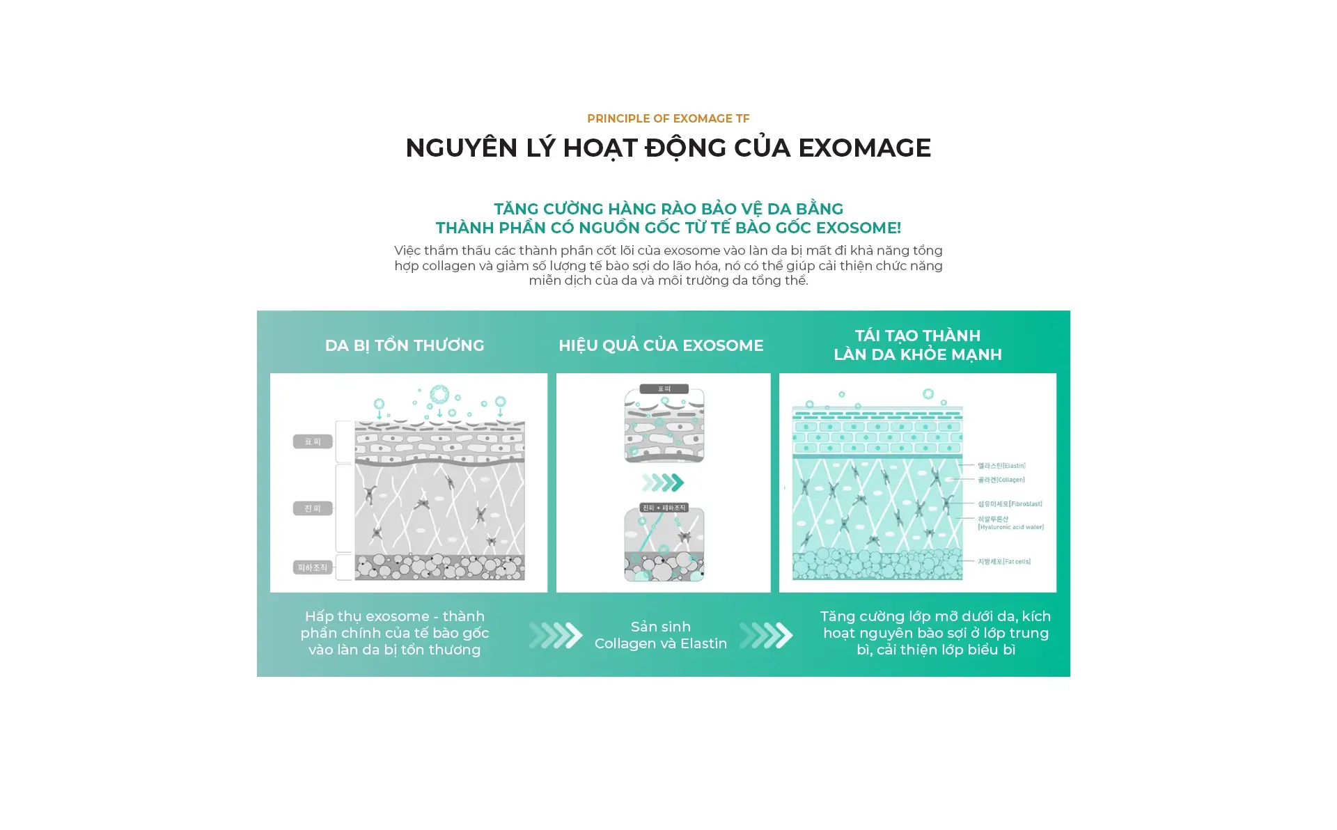 Exomage là một loại skin booster thế hệ mới, giúp kích hoạt năng lượng tự nhiên của da bằng dịch nuôi cấy tế bào gốc và tạo ra năng lượng da chắc khỏe từ bên trong.